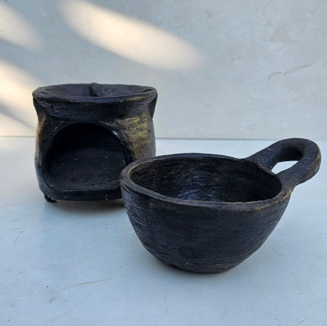Bring warmth, tradition, and artisanal beauty into your home with our Mini Chiminea with Bowl, handcrafted from barro negro, a high-end black clay renowned for its durability and elegance.