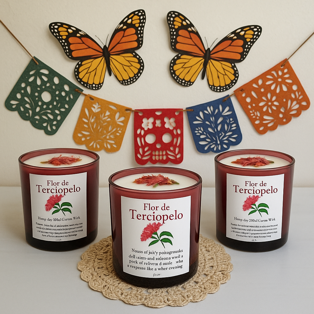 Celebrate Día de los Muertos with the Flor de Terciopelo (velvet blossom) Candle, inspired by the deep crimson “velvet flower” that adorns altars alongside marigolds during this sacred time of remembrance. Symbolizing love, devotion, and the eternal bond between the living and the departed, this flower carries both elegance and soul.
